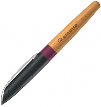 Plnicí pero STABILO Grow – hrot M, vč. bombičky s tělem z olejovaného certifikovaného dřeva z Německa. Ergonomická úchopová zóna zajišťuje pohodlné psaní. Kvalitní psací systém s nerezovým hrotem s iridiovou špičkou poskytuje plynulý tah a ochranu proti vytečení. Pero je doplnitelné standardními inkoustovými bombičkami a obsahuje bombičku s královsky modrým, zmizíkovatelným inkoustem. Uzávěr je vyroben z plastu částečně nahrazeného přírodními vlákny. Použité obnovitelné materiály pocházejí z odpadních produktů potravinářského a papírenského průmyslu.